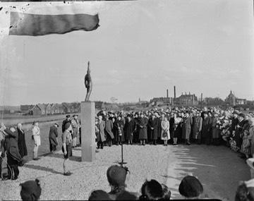 Beschrijving Bijeenkomst bij het Verzetsmonument op de Spaarndammerdijk halverwege Halfweg en Haarlem. Het monument herinnert aan de tien mensen uit het verzet in de Tweede Wereldwereldoorlog die op die plek werden gefusileerd op 17-02-1945. Het beeld met de namen van de overledenen is onthuld op 15-04-1950 en is later enkele malen verplaatst. De beeldend kunstenaar is Jan Willem Havermans. Plaats, Straat Spaarndammerdijk, Haarlem : Halfweg Persoon Havermans, Jan Willem Deelcollectie Vlakfilms Reportagenummer NL-HlmNHA_1478_NN034B_01_0001 Inventarisnummer NL-HlmNHA_1478_NN034B_01