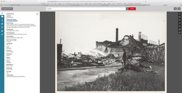 Duitse bezetting 1940/'45. Neergeschoten Engels vliegtuig (bommenwerper), dat neerkwam op de Oudeweg, waarbij zeven woningen uitbrandden en instortten (6 juli 1940).
